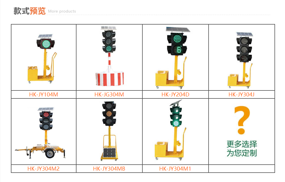 太陽能移動式紅綠燈簡稱移動紅綠燈,我們把設(shè)備安裝形式分為,手推式、盤座式、牽引拖掛式等;相位分,單相位、多相位多路輸出、及帶倒計(jì)時功能等;LED顯示燈盤分為,滿屏燈、箭頭燈等特殊顯示;其產(chǎn)品特點(diǎn),利用太陽能供電,具有環(huán)保節(jié)能、安裝快捷、便于移動、可升降、簡單方案設(shè)置等優(yōu)點(diǎn)。通過信號燈24小時對路口進(jìn)行管控,維護(hù)了路口行車秩序,保障路口的交通安全,降低交通事故的發(fā)生,推進(jìn)了交通管理科技智能化進(jìn)程。廣泛適用于城鎮(zhèn)道路建設(shè)及開發(fā)區(qū)等交叉口,停電或施工情況應(yīng)急指揮車輛行人通行。